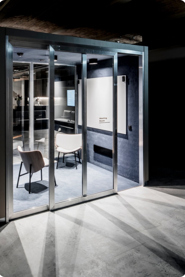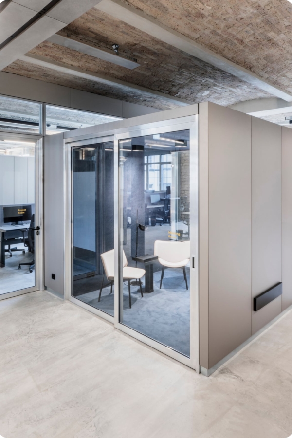 Das Raum-in-Raum-Konzept ermöglicht eigenständige, deckenunabhängige Strukturen in bestehenden Räumen. Unsere Trennwandsysteme schaffen transparente bis opake Lösungen, die sich optisch und funktional anpassen lassen – sowohl in der Konstruktion als auch im Oberflächendesign.